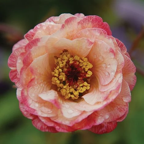 This new variety of Avens is particularly pretty with semi double, ruffles of petals in a blend of rose-pink and creamy-apricot. Geum ‘Cosmopolitan’ forms a neat clump of semi evergreen foliage that is well proportioned for the front of sunny borders. Flowering from late spring into summer, the nectar rich blooms of this hardy perennial are loved by pollinators and make delightful cut flowers too. Height: 60cm (24″”). Spread: 45cm (18″”).